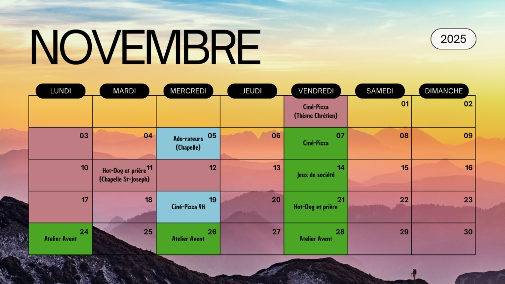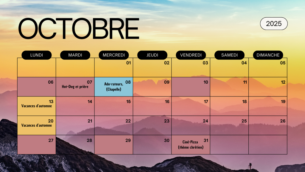 L’activité se déroule le samedi de 14h00 à 17h00: tu recevras tous les détails par Teams une fois inscrit(e) (à l’aide du bulletin de ton aumônerie), et si tu as des questions, n’hésite pas à les poser !