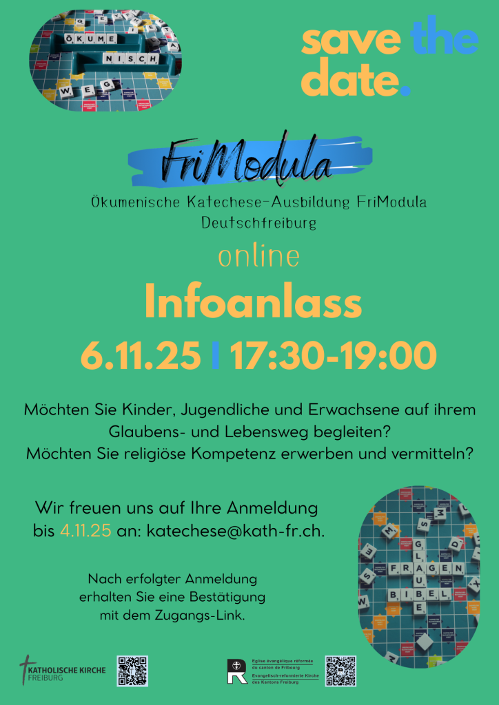 FriModula ist die ökumenische Katechese-Ausbildung in Deutschfreiburg. Modular und praxisorientiert werden Sie auf die spannende Aufgabe als Katechet/in vorbereitet. Im Religionsunterricht in der Primarschule und in der Katechese begleiten Sie Kinder auf ihrem Lebens- und Glaubensweg.