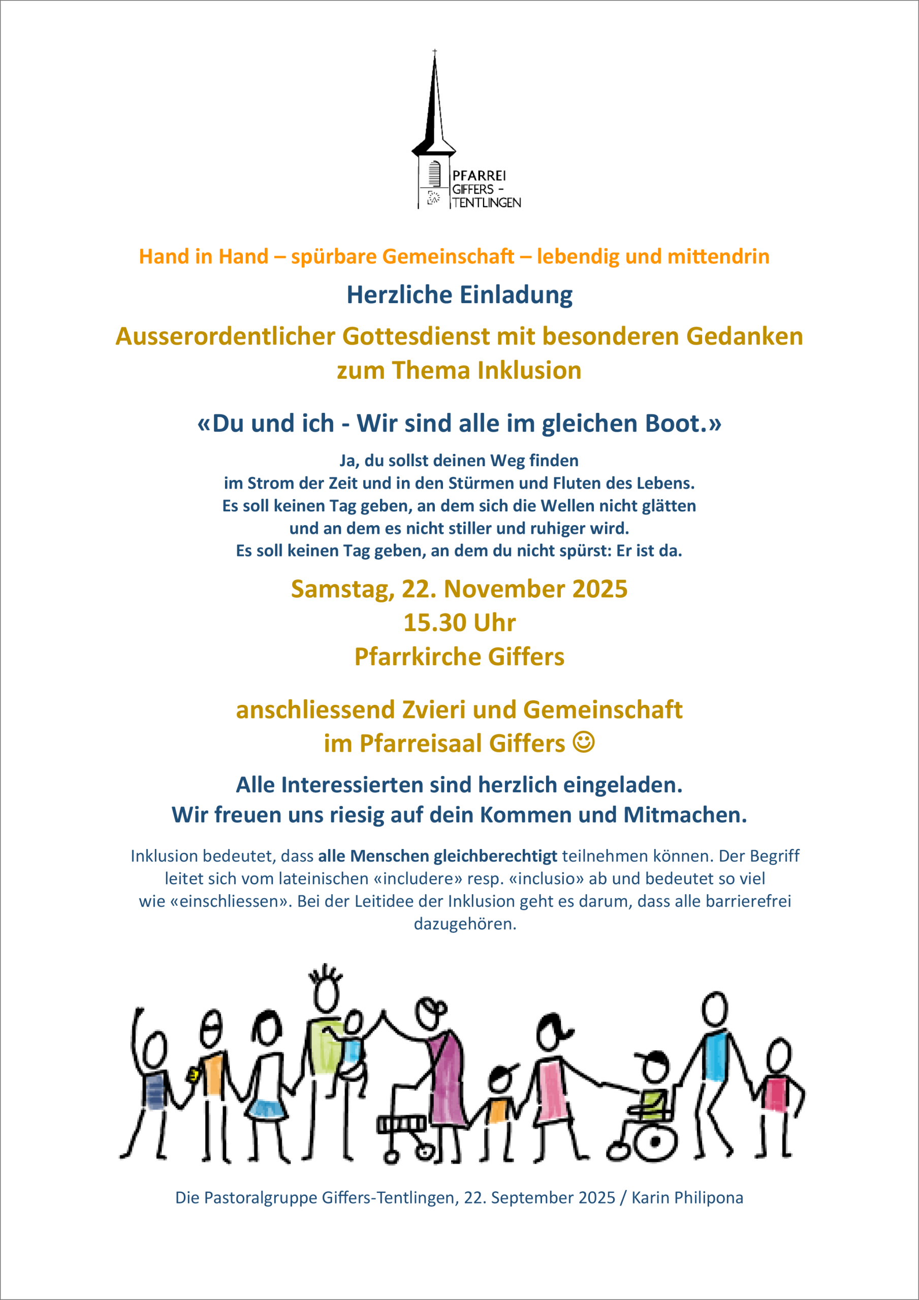 - Wer: Die Pastoralgruppe Giffers-Tentlingen; Karin Philipona-Schafer; Fachstelle Behindertenseelsorge
