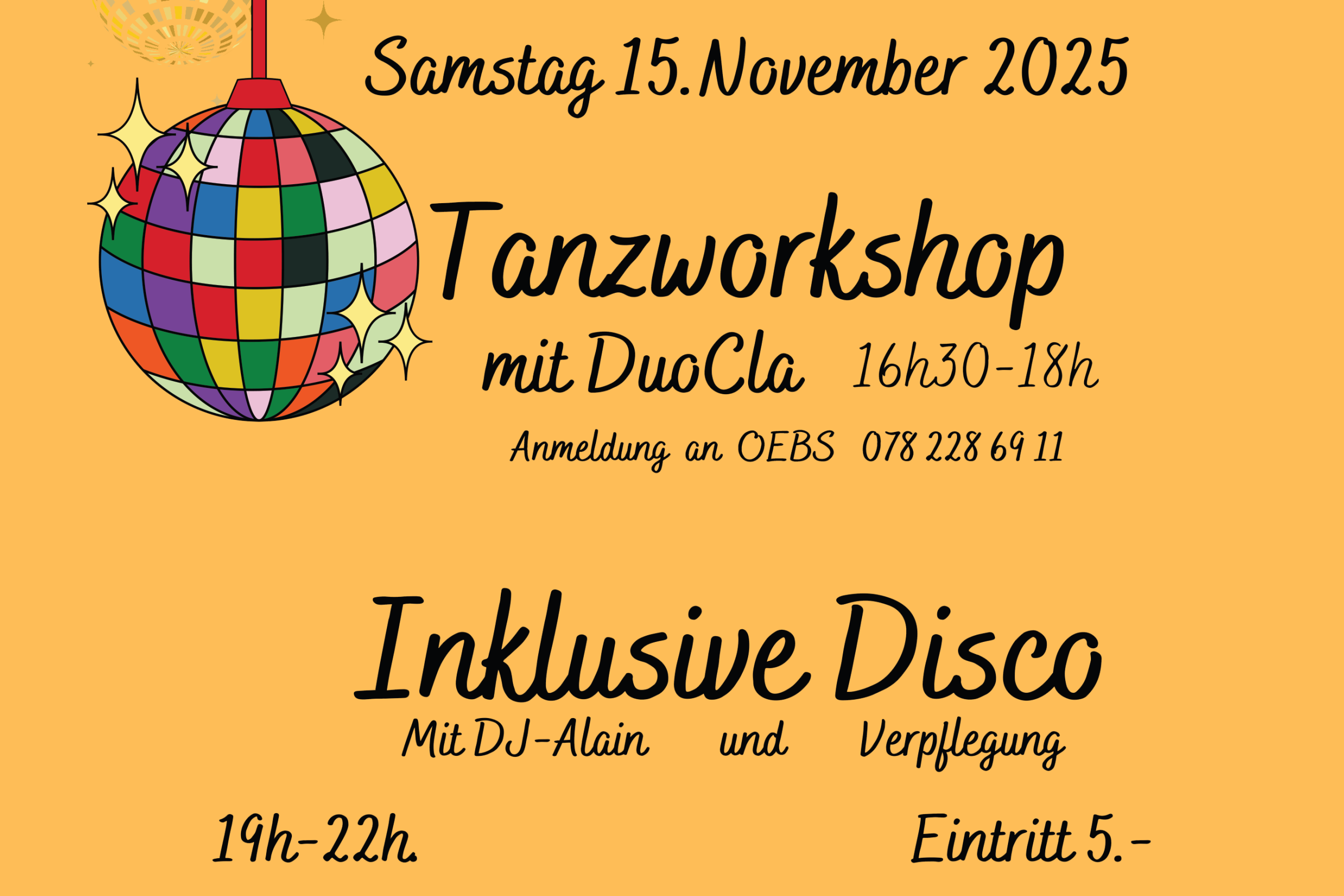 Tanzt du gerne? Oder möchtest du einfach nur Freunde treffen? Dann komm zum Tanzworkshop und zur Inklusiven Disco am 15. November nach Murten!