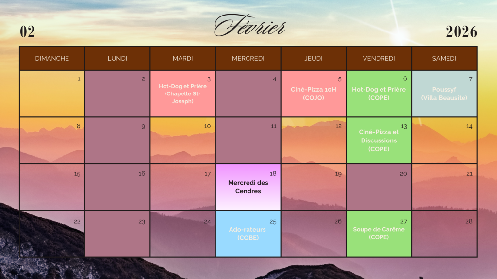 Ci-dessous, nos activités pour le mois en cours :